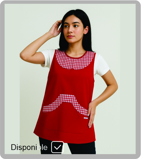 CARACTERÍSTICAS DE ESTE ARTÍCULO: tela Arciel (opcional cuadrillé o denim), vivos de algodón con broches plásticos a los costados (opción metálicos). Bolsillo canguro con diseño de guarda de cuadrillé al igual que el babero (opcional liso o estampado a elección según disponibilidad).