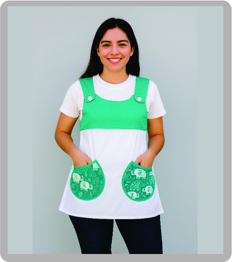 CARACTERÍSTICAS DE ESTE ARTÍCULO: tela Arciel (opcional cuadrillé o denim), canesú frente y trasero, vivos de algodón con broches plásticos (opcional metálicos) a los costados.
