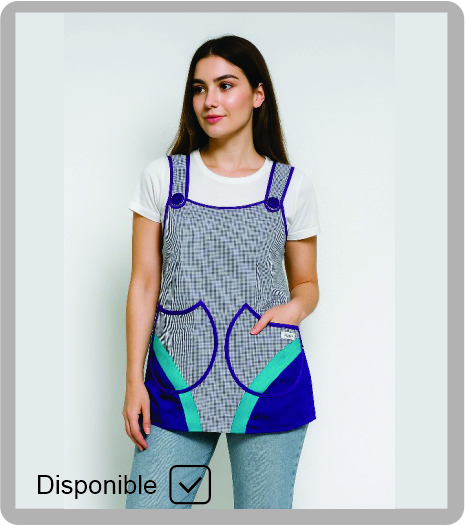 CARACTERÍSTICAS DE ESTE ARTÍCULO: tela cuadrillé (opcional Arciel o denim), frente con cortes de color en la parte inferior a elección, vivos de algodón con broches plásticos (opcional metálicos) a los costados. Estampados a elección según disponibilidad.